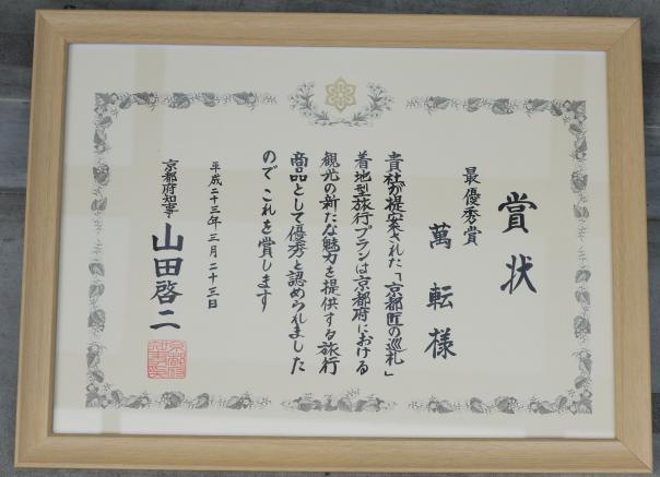 京都府「京都匠の巡礼 着地型旅行プラン」にて最優秀賞に輝きました。